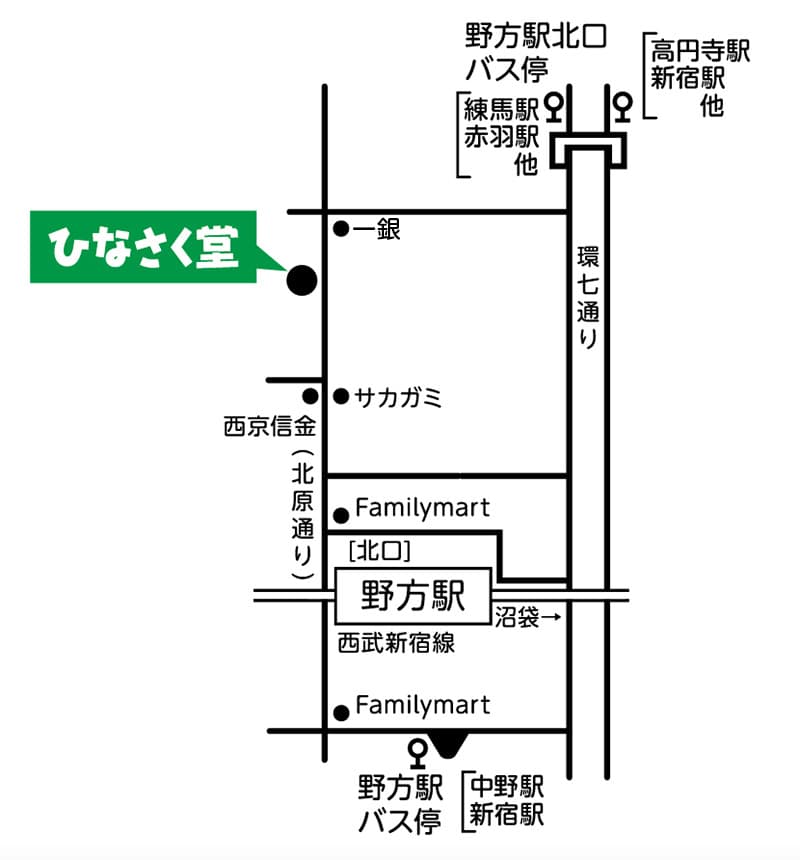→「野方」バス停下車 徒歩3分